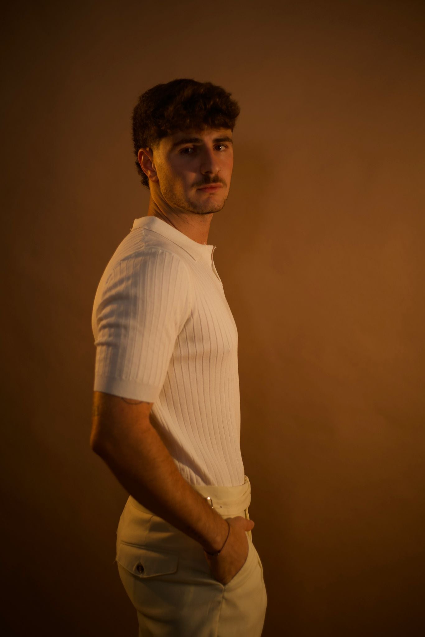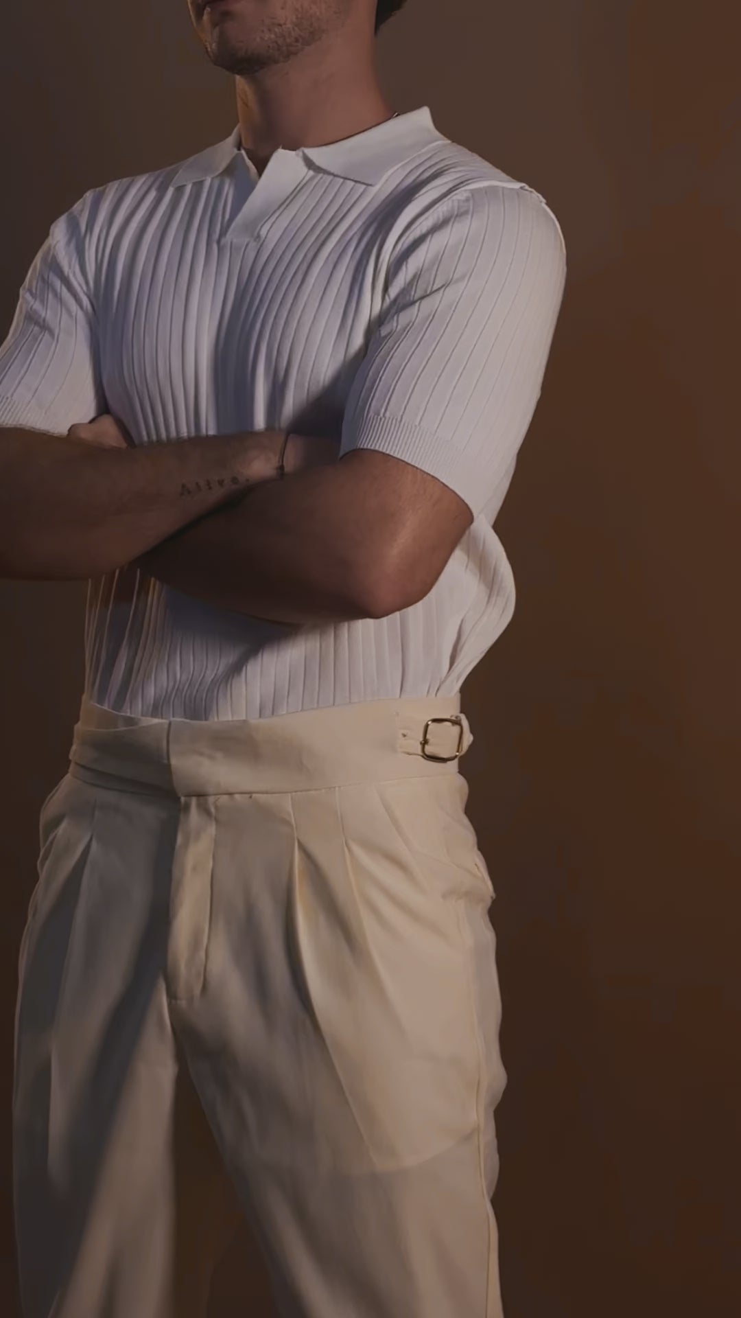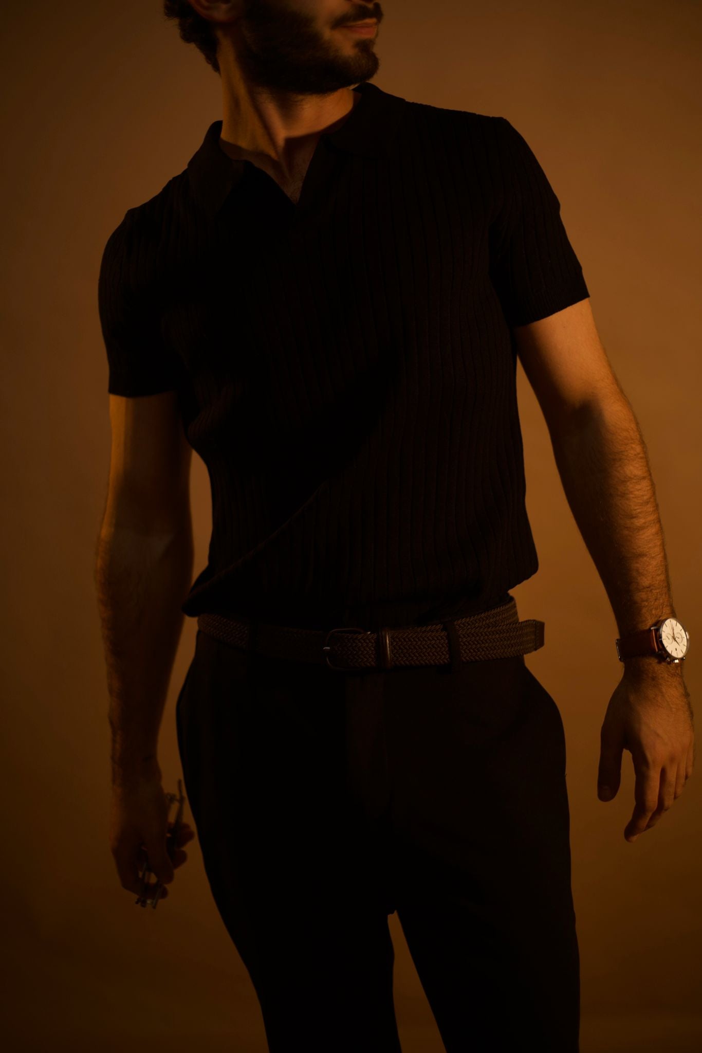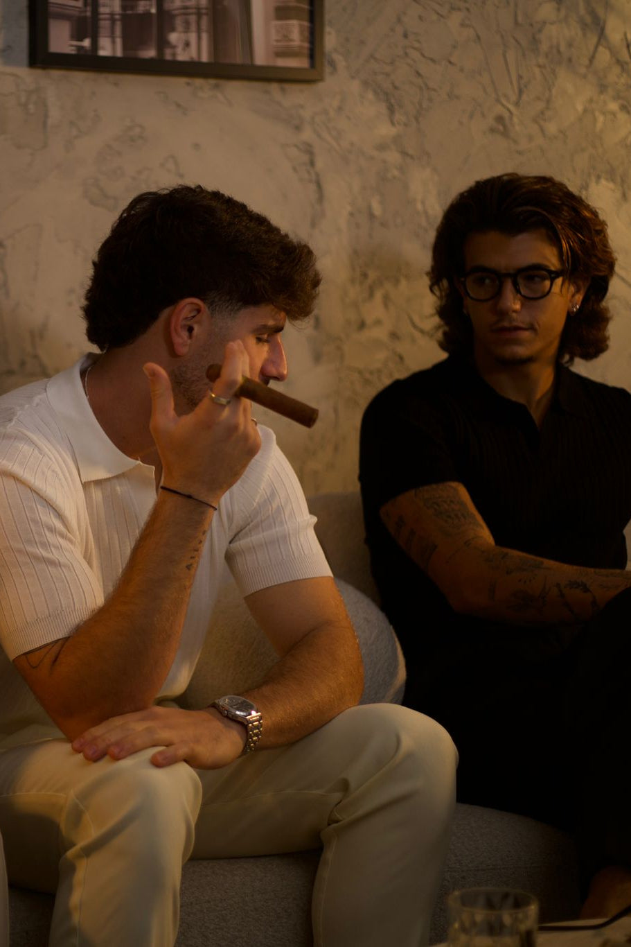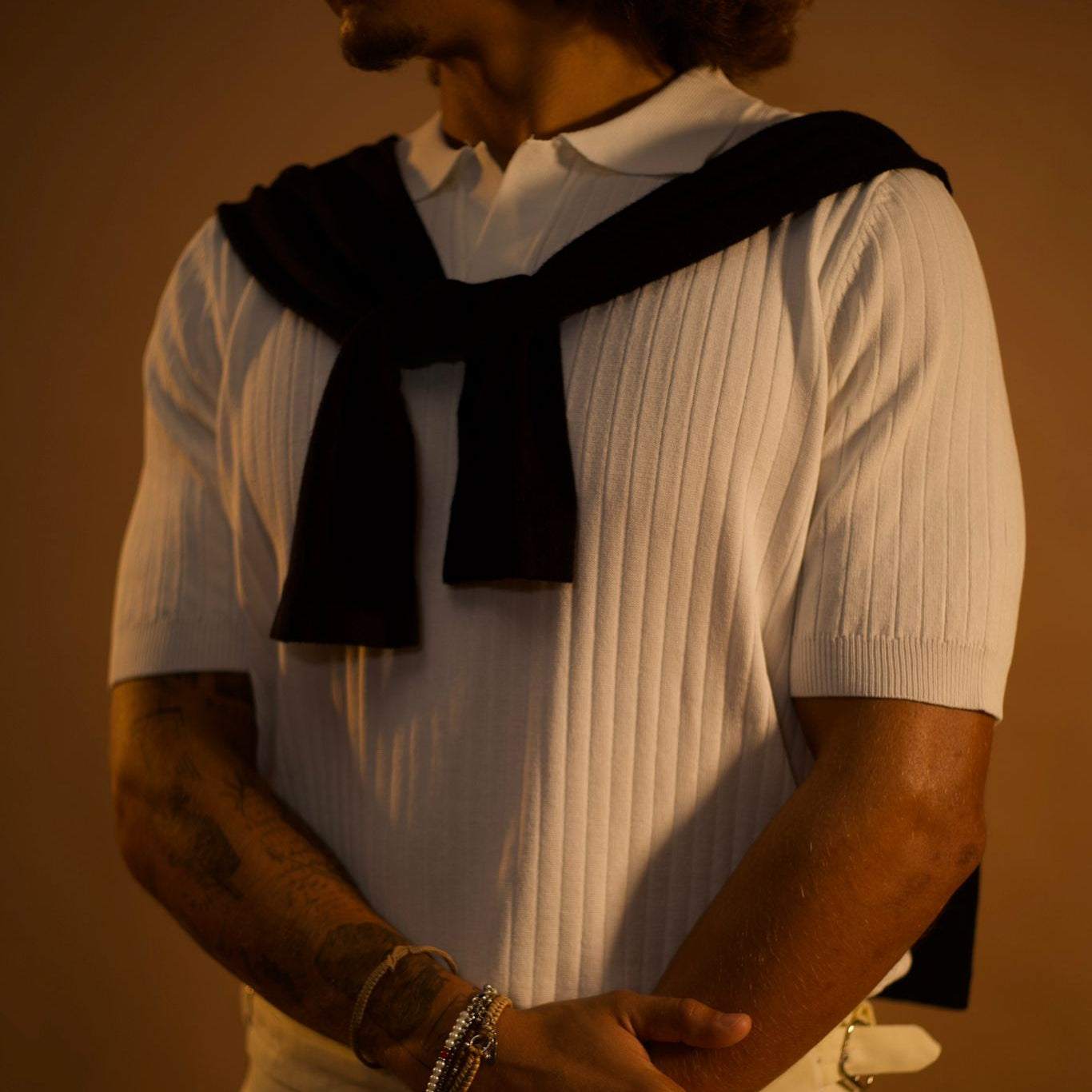 חולצת פולו סריג אלגנטית בגזרה נקייה ומדויקת, עשויה בד רך ונושם עם טקסטורת צלעות עדינה המעניקה מראה יוקרתי ורגוע.