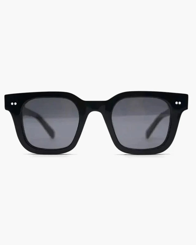 מסגרת עבה בקו נקי ואלגנטי, עם עדשות כהות שמוסיפות נוכחות וסטייל קלאסי.