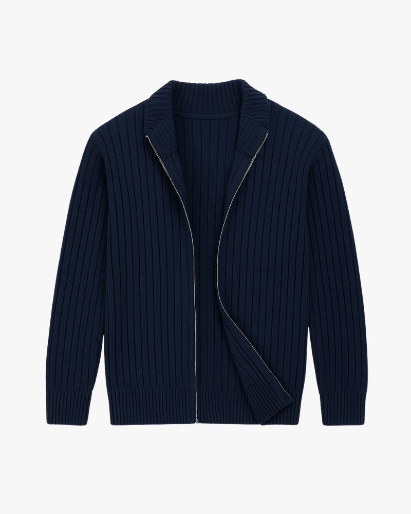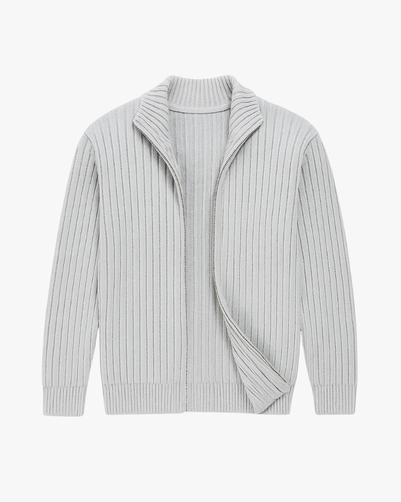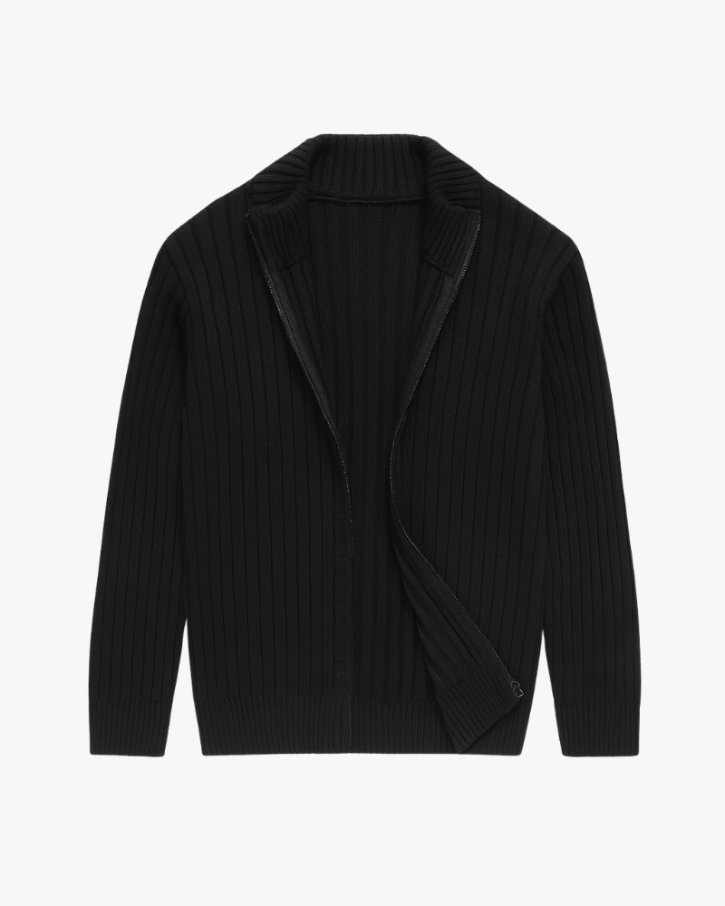 ג׳קט סרוג בגזרה נקייה עם רוכסן קדמי מלא, עשוי מבד איכותי ועבה השומר על צורתו לאורך זמן. הטקסטורה הקלאסית מוסיפה עומק ותחושת יוקרה, והגימור המדויק מעניק מראה אלגנטי ובלתי מתאמץ.