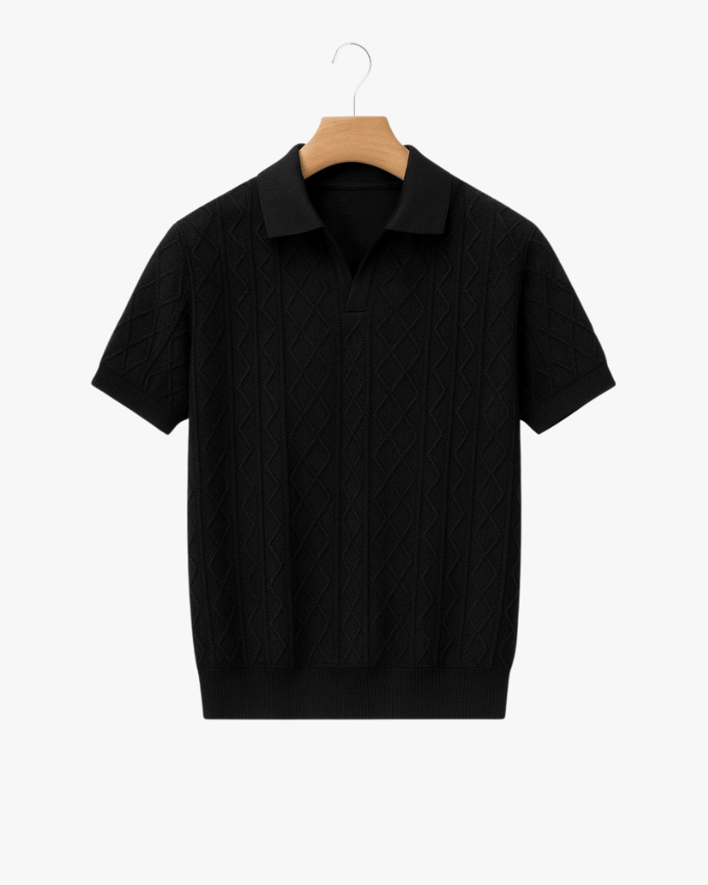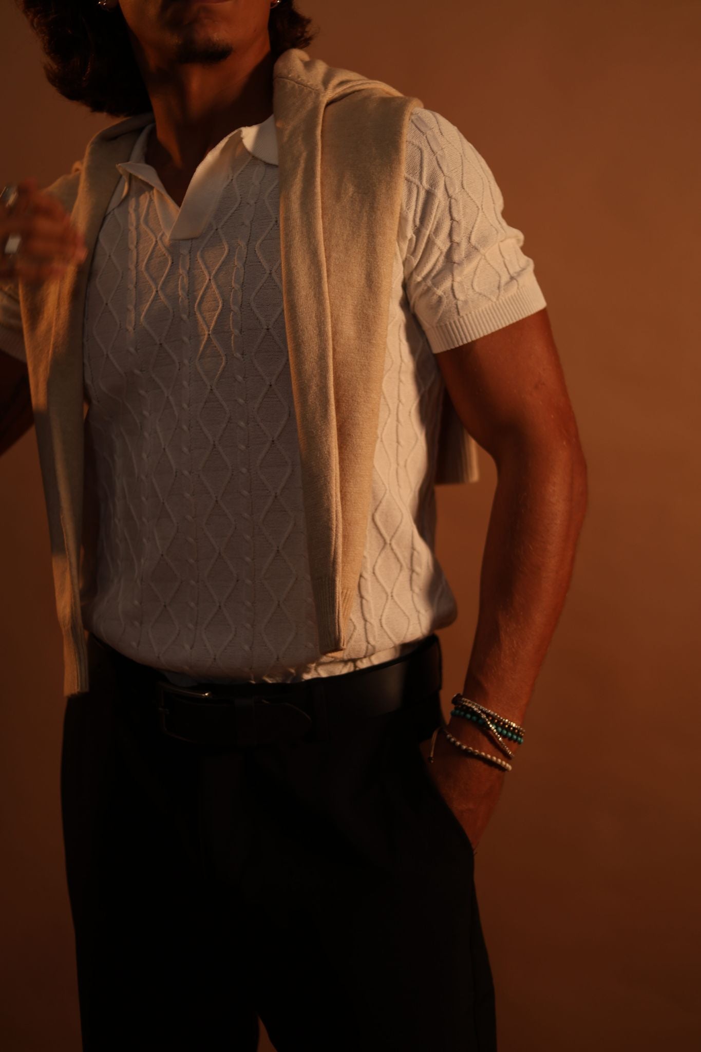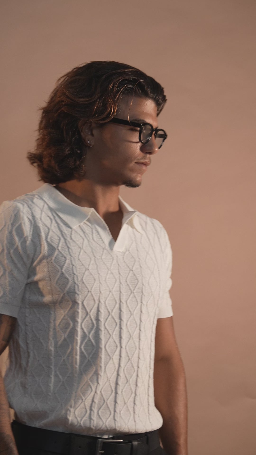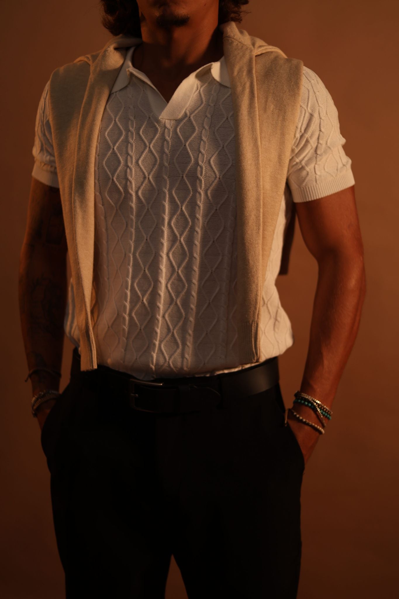 חולצת פולו סרוגה במרקם וופל ייחודי, בעובי הנכון. עשויה מבד איכותי ונושם שמרגיש יוקרתי על הגוף, עם טקסטורה עדינה שמעניקה עומק וסטייל בלי צורך במאמץ.